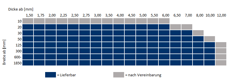 • Toleranzen: DIN EN 10048 bzw. 10051 und enger